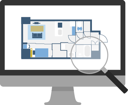 弊社スタッフが現地に行き、現地からタブレットにてお部屋の状況等をお伝えします。細かく見たい部分等をご希望どおりに映像でお伝えいたします。